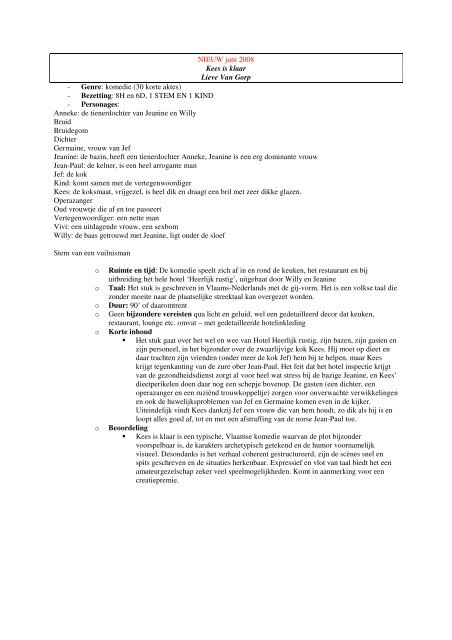 Nieuw Juni 2008 Kees Is Klaar Lieve Van Gorp Genre Opendoek
